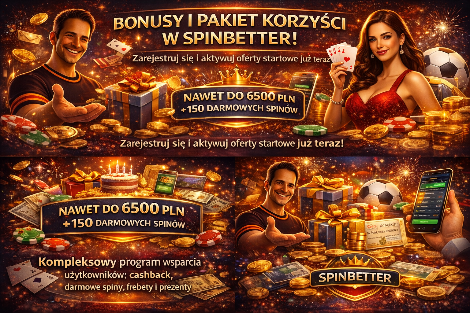 Bonusy w SpinBetter to nie jednorazowa promocja, lecz przemyślany system stałego wsparcia użytkowników. Opracowaliśmy kompleksowy program lojalnościowy, który obejmuje pakiety powitalne, cotygodniowy cashback, bonusy reload, freebety, SpinBetter casino no deposit bonus oraz spersonalizowane prezenty urodzinowe. Wszystkie te narzędzia zostały stworzone po to, abyś mógł grać dłużej, ograniczać ryzyko i pewnie dążyć do dużych wygranych. Zarejestruj się i aktywuj oferty startowe już teraz.